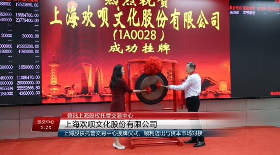 2023年10月26日,随着一阵挂牌锣声响起,经上海朗荣投资管理有限公司推荐, 成功推荐上海欢呗文化股份有限公司,企业代码:1A0028 登陆上海股权交易中心E板基本信批层,顺利迈出与资本市场对接的第一步。企业领导人前来参加挂牌仪式。
